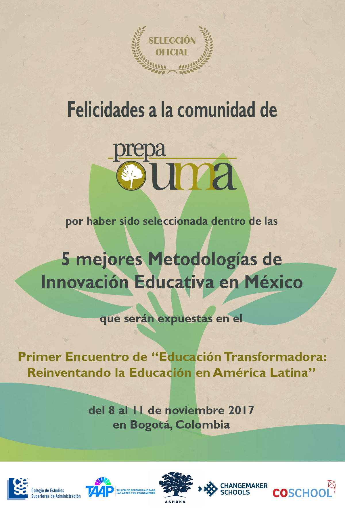 Es para nosotros un gusto compartirles que la Prepa UMA ha sido seleccionada para ser parte del mapeo a las mejores metodologías de Innovación Educativa en México. Hace algunos meses Karina Gutiérrez, Directora General de Prepa UMA, inscribió la propuesta educativa de nuestra Prepa a un concurso en Innovación Educativa para jóvenes agentes de cambio, convocada por la Organización global Ashoka México y Centro América.
